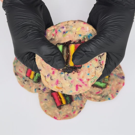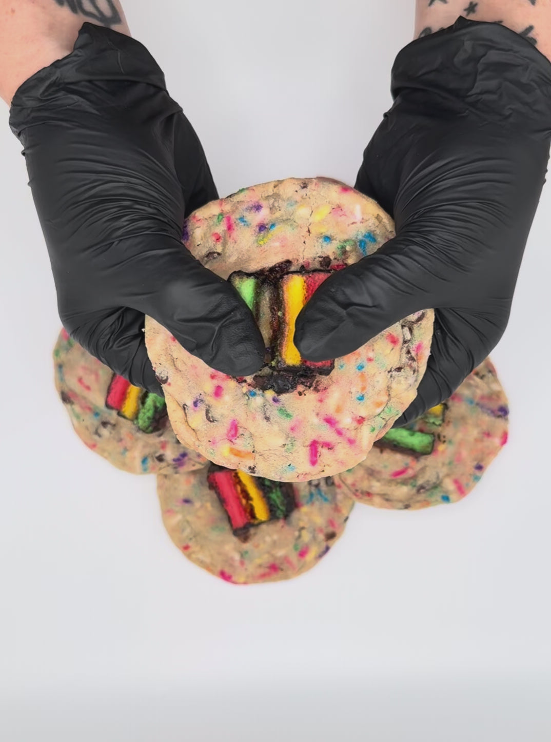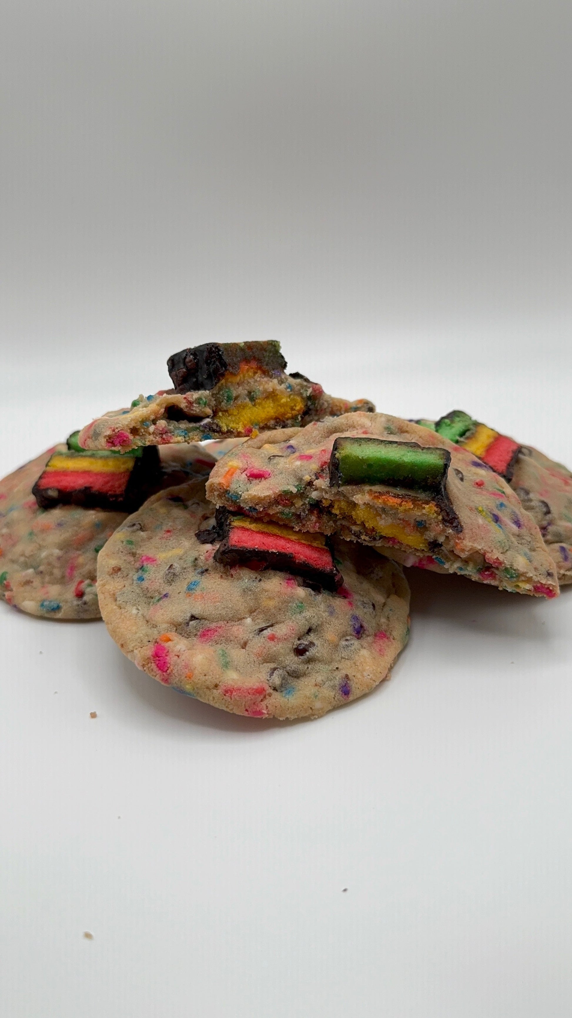 A cookie baked to perfection with a rich Italian rainbow cookie center bringing layers of chocolate and raspberry sweetness in every bite